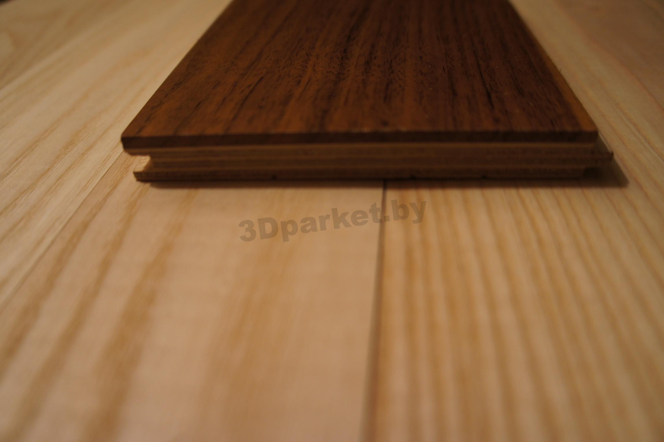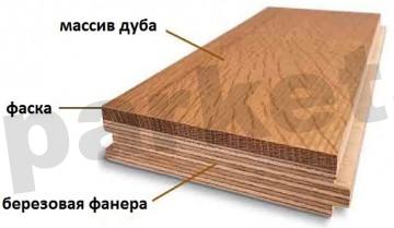 Паркетная доска состоящая из нескольких слоев конструктивно представляет пирог, склеенный из разных пород древесины, в нижних слоях в качестве подложки как правило используют фанеру, а верхний слой состоит из древесины различных ценных пород. Такая доска выпускается с полной финишной отделкой лицевой стороны под лак или масло.