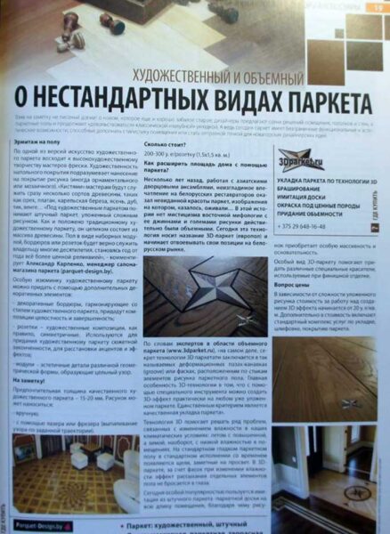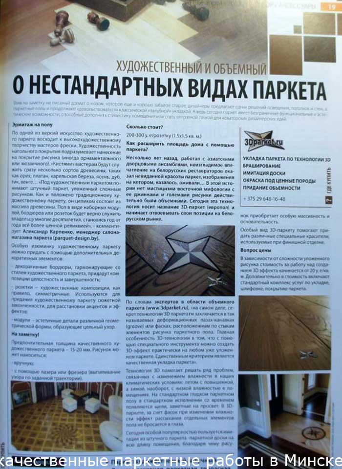 - «О нестандартных видах паркета » (статья — Как расширить площадь дома?), выпуск — 4 апреля 2012 года