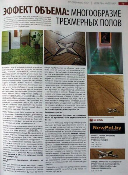 - «Эффект объема: многообразие трехмерных полов» (статья — Как добиться идеального объема… на полу?), выпуск — 7 июля 2012 года