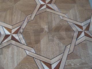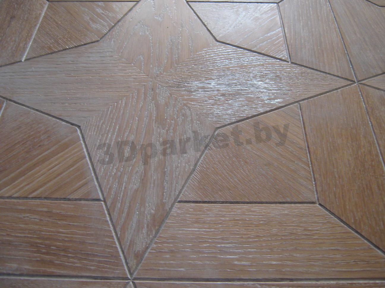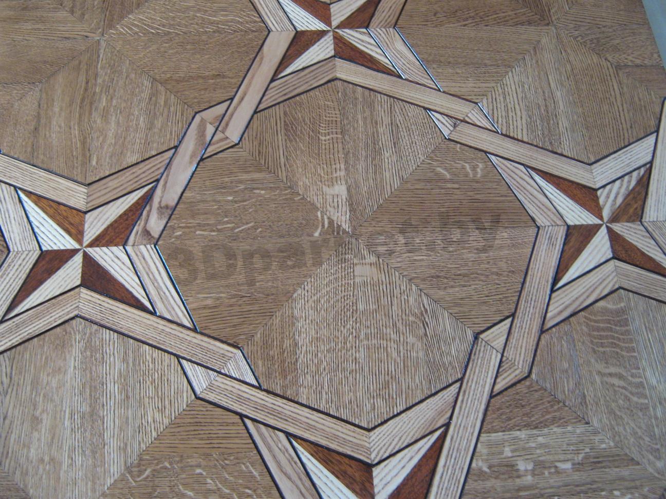 Укладка 3D паркета осуществляется с использованием штучного паркета и фанеры, что в итоге представляет массивную конструкцию практически без стыков, которые видны при промышленном изготовлении.